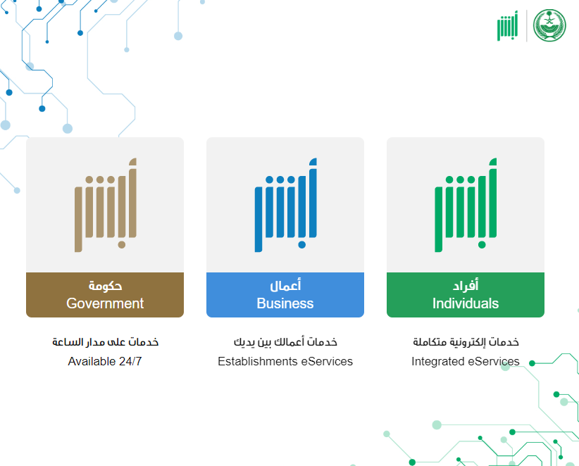 - قم بالانتقال إلى منصة أبشر الإلكترونية.