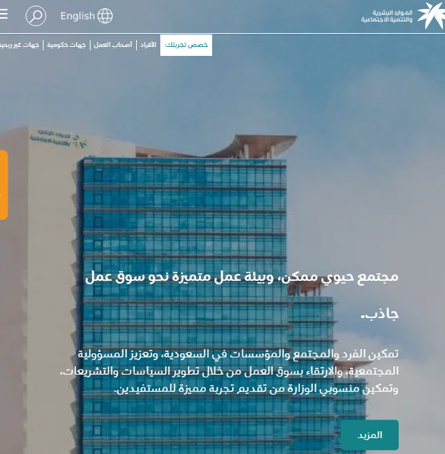 - التوجه إلى الموقع الخاص بوزارة الموارد البشرية والتنمية الاجتماعية عبر الإنترنت.