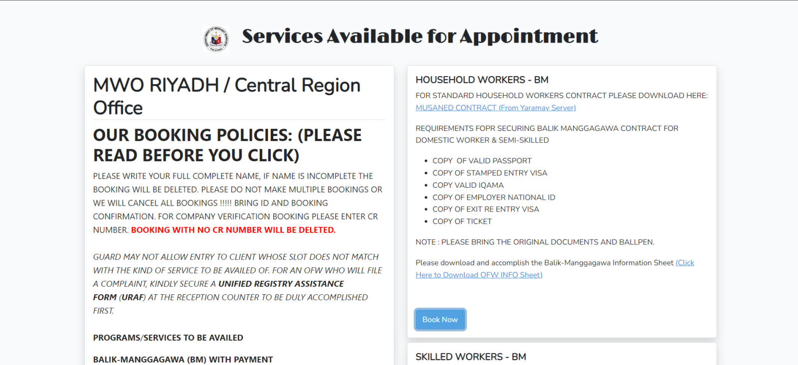 طريقة حجز موعد في مكتب العمل الفلبيني بولو