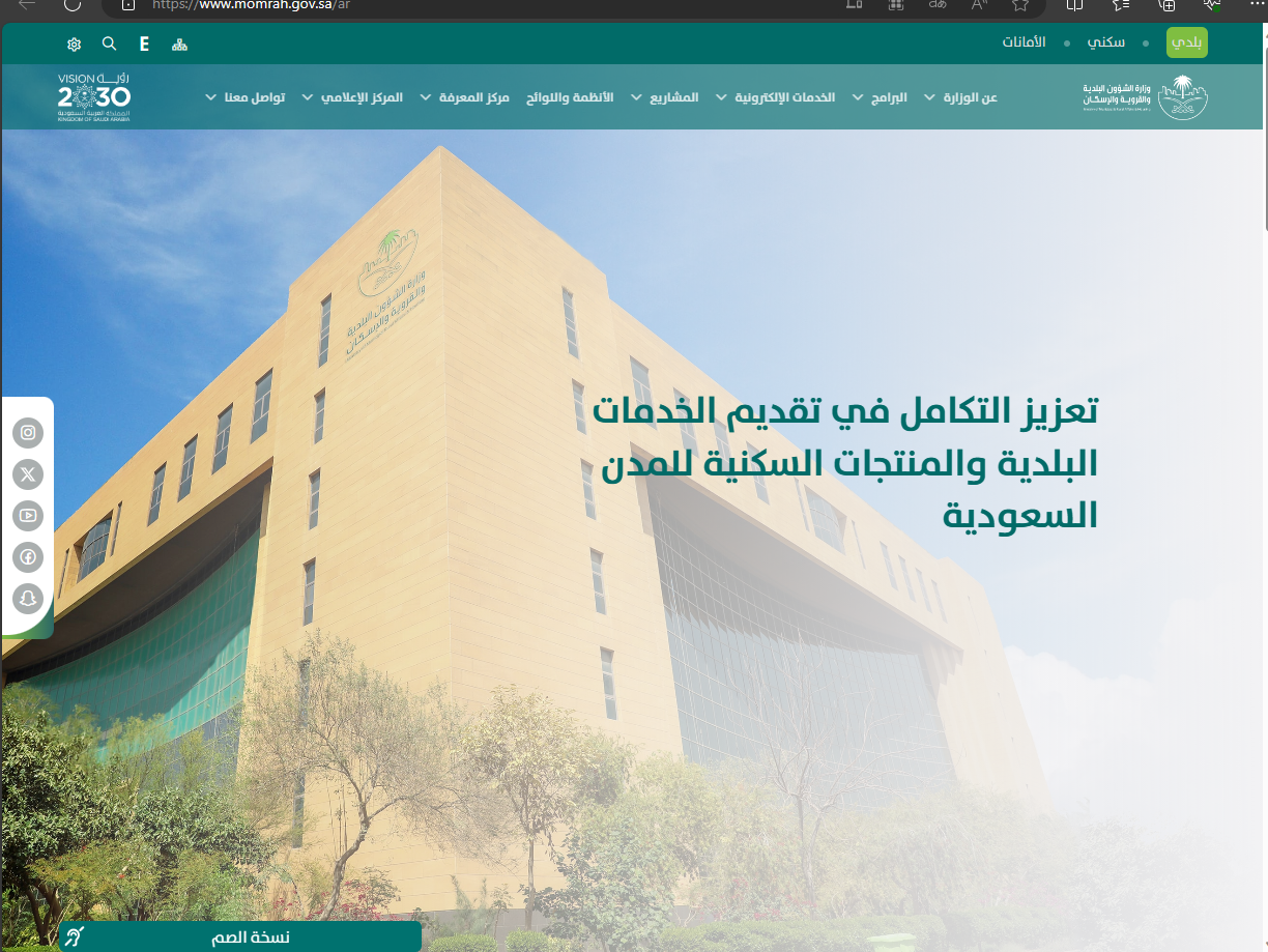 - الذهاب إلى الموقع الرسمي لوزارة الشؤون البلدية والقروية.