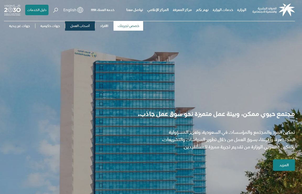 - قم بالدخول إلى الموقع الرسمي لوزارة الموارد البشرية والتنمية الاجتماعية "من هنا".