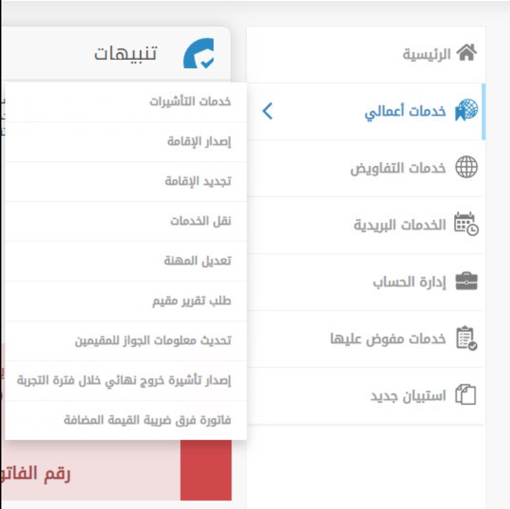 - من القائمة الرئيسية اختار "خدمات أعمالي".