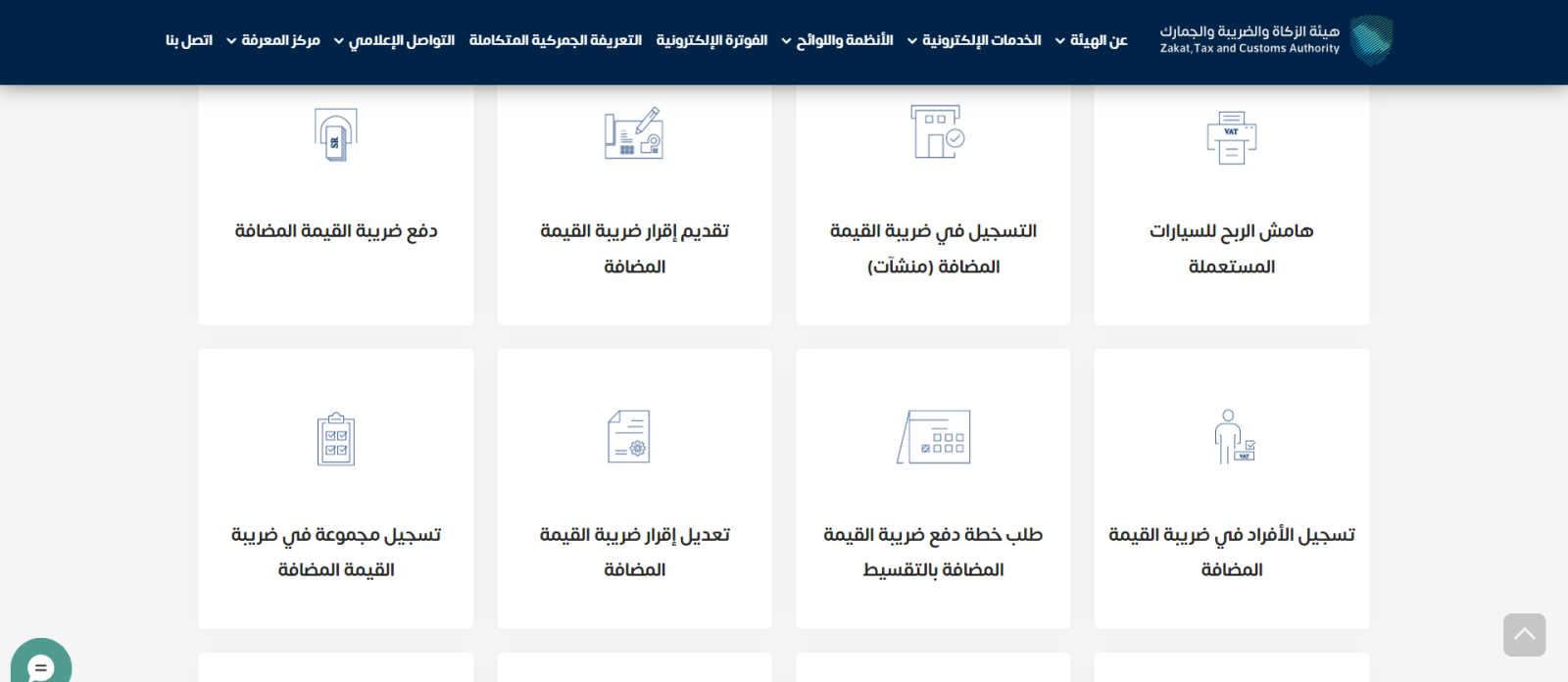 تقدم هيئة الزكاة والضريبة والجمارك داخل السعودية مجموعة من الخدمات الإلكترونية ومنها التسجيل في ضريبة القيمة المضافة، ويمكن القيام بذلك عبر الارشادات التالية: