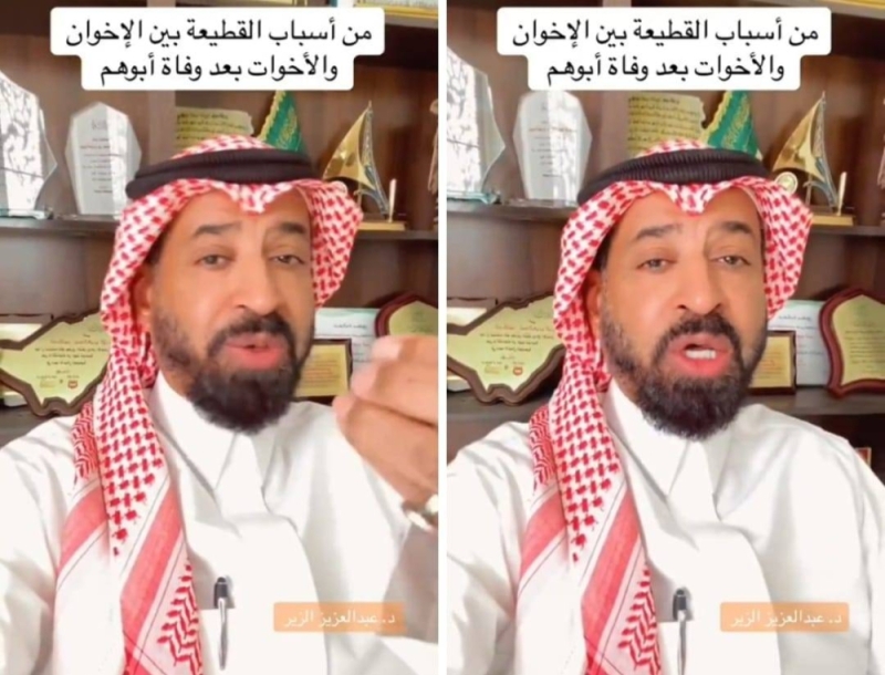 الإعلامي عبد العزيز الزير يشير إلى الأسباب وراء القطيعة التي تحدث بين الإخوان والأخوات بعد وفاة الوالد، وقد أشار من خلال الفيديو الذي انتشر له على مواقع التواصل الاجتماعي إلى السبب بالتفصيل وقال: