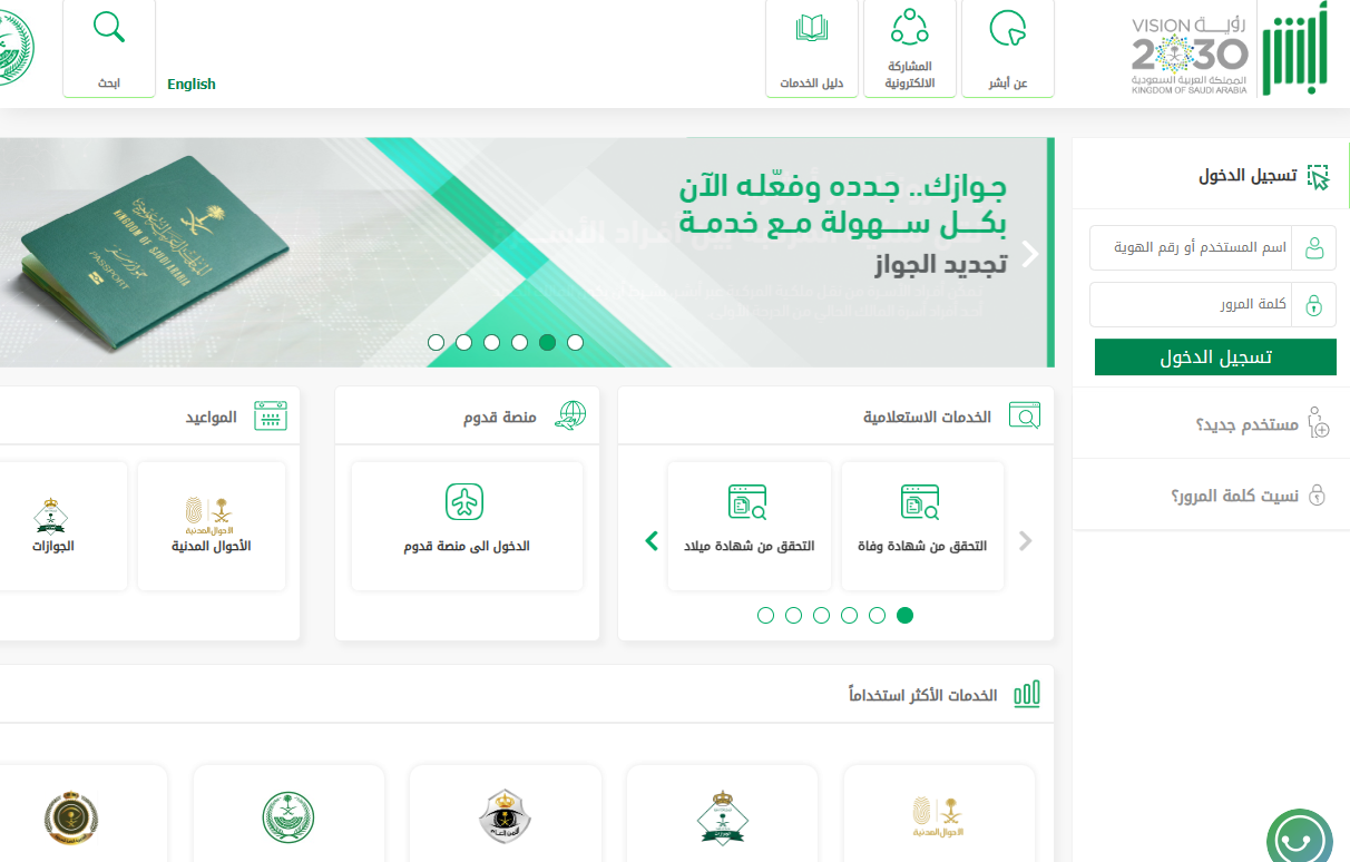 - الوصول إلى الموقع الرسمي لمنصة أبشر.