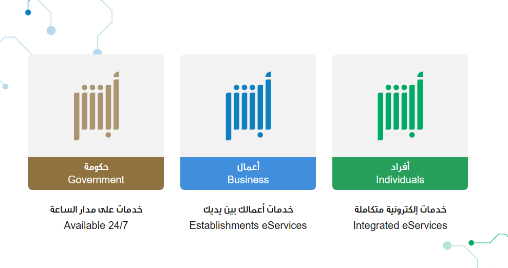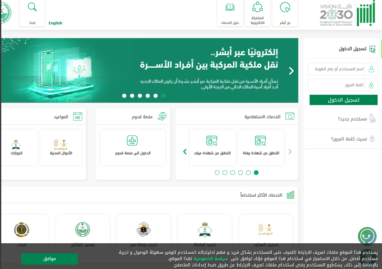 - الانتقال إلى الموقع الرسمي لمنصة أبشر.