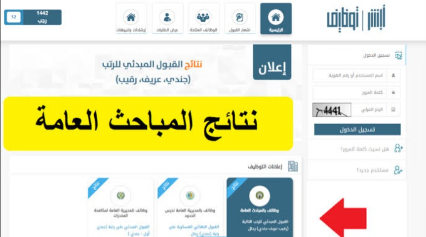 الاستعلام عن نتائج قبول المباحث العامة