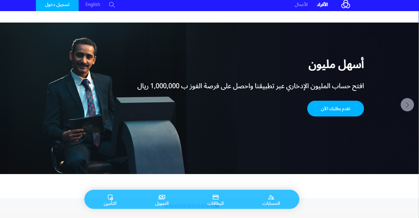 - قم بتسجيل دخول لحسابك الشخصي في مصرف الراجحي.