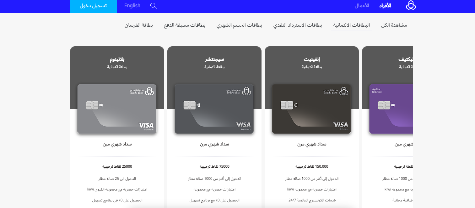أبرز بطاقات بنك الراجحي
