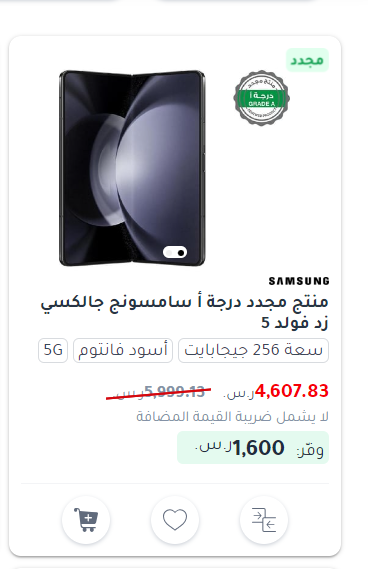 - سامسونج جالكسي زد فولد 5 بسعر 5738.26 ريال سعودي.