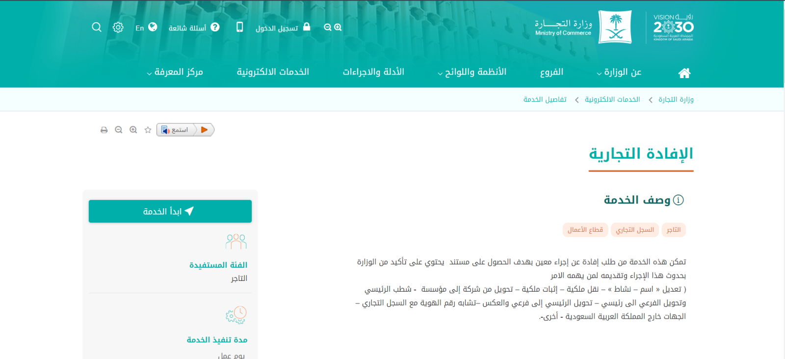 خطوة بخطوة طريقة استخراج الإفادة التجارية إلكترونيًا 1445 هل يوجد شروط للخدمة