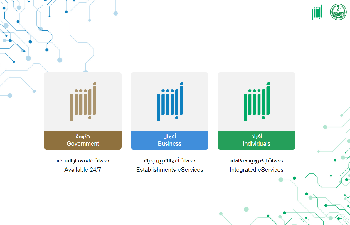 - قم بالدخول بشكل مباشر إلى منصة أبشر الإلكترونية "من هنا".