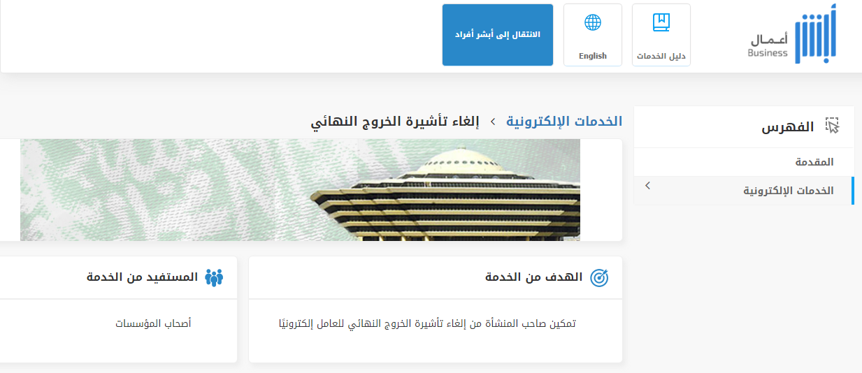 - قم بالدخول بشكل مباشر إلى خدمة إلغاء الخروج النهائي "من هنا".