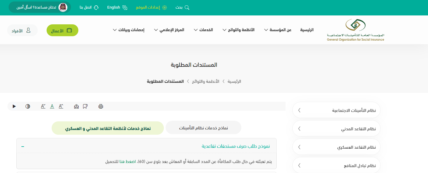- الدخول للمؤسسة العامة للتأمينات الاجتماعية.