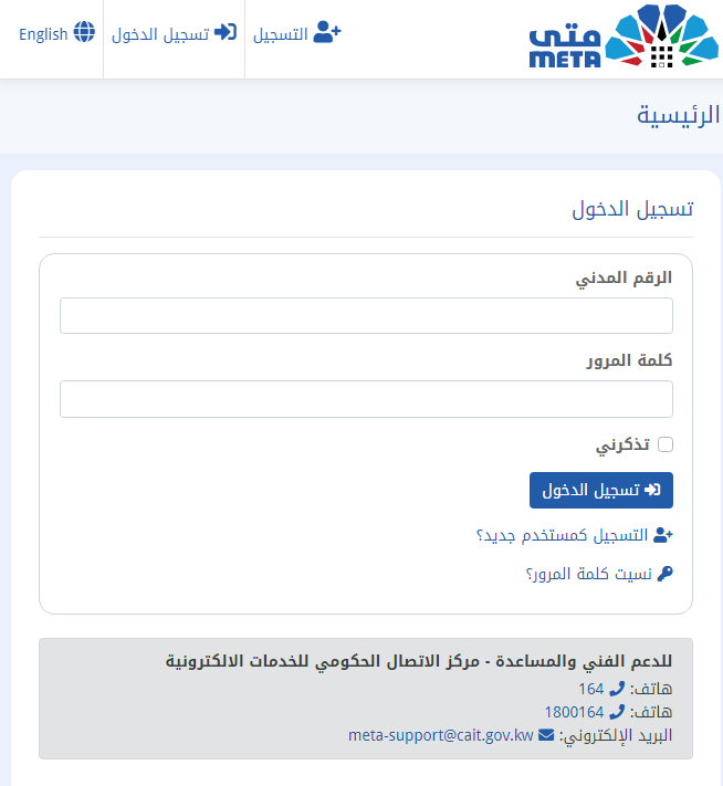 - يتم تسجيل الدخول وذلك من خلال الرقم المدني وكلمة المرور.