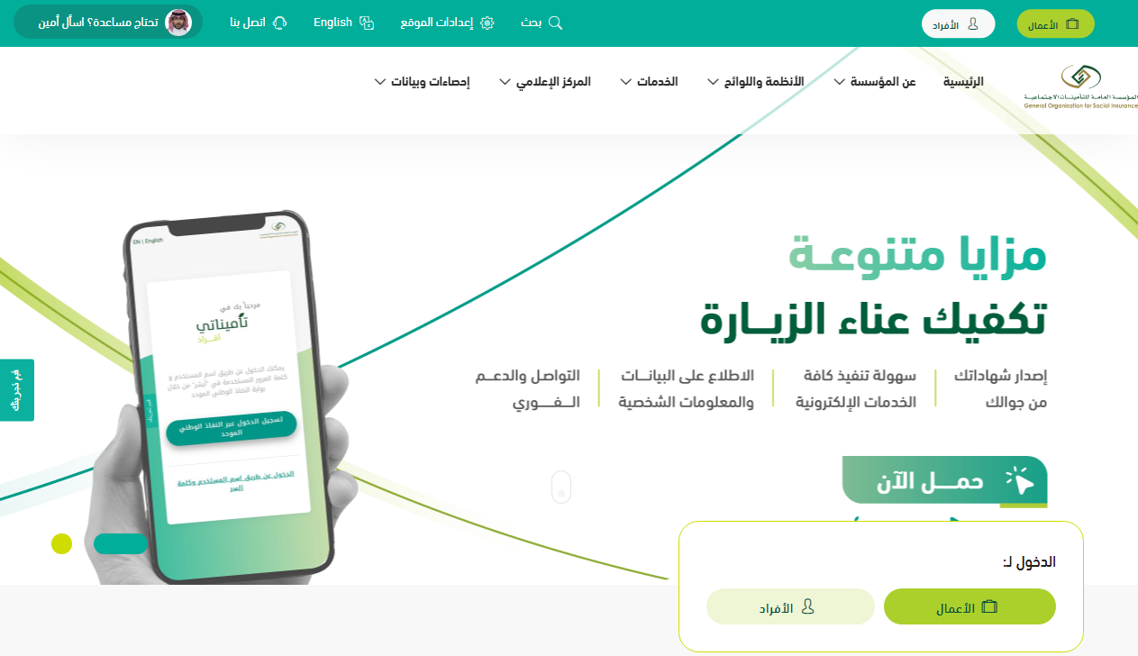 - قم بالدخول بشكل مباشر إلى موقع المؤسسة العامة للتأمينات الاجتماعية "من هنا".