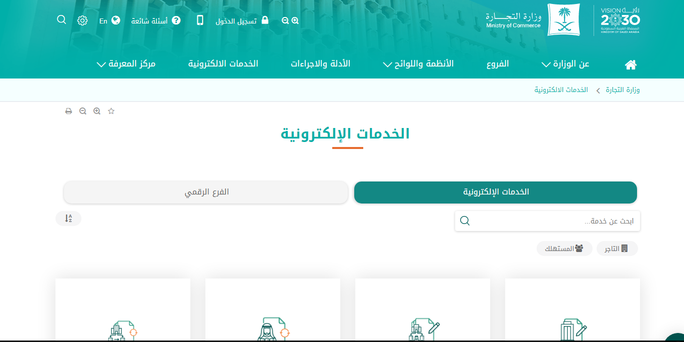 - الولوج إلى موقع وزارة التجارية السعودية.