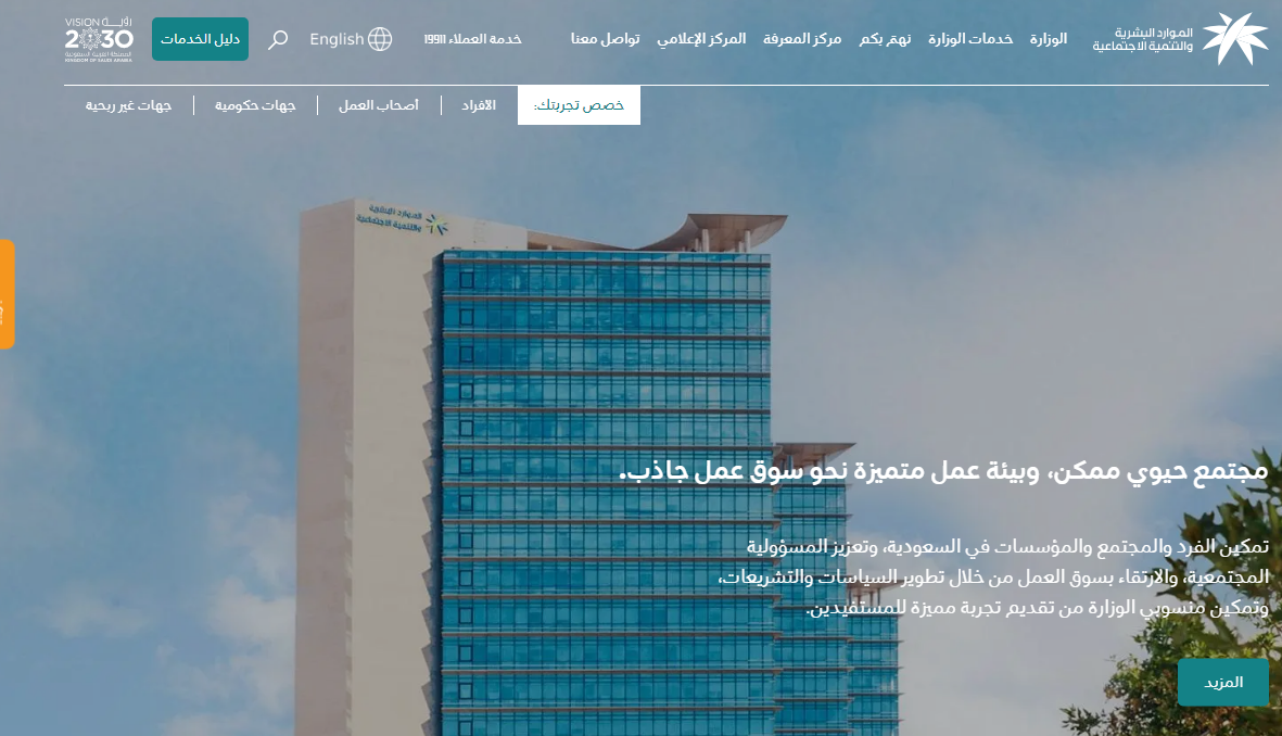 - قم بالدخول بشكل مباشر إلى موقع وزارة الموارد البشرية والتنمية الاجتماعية الإلكتروني الرسمي "من هنا".