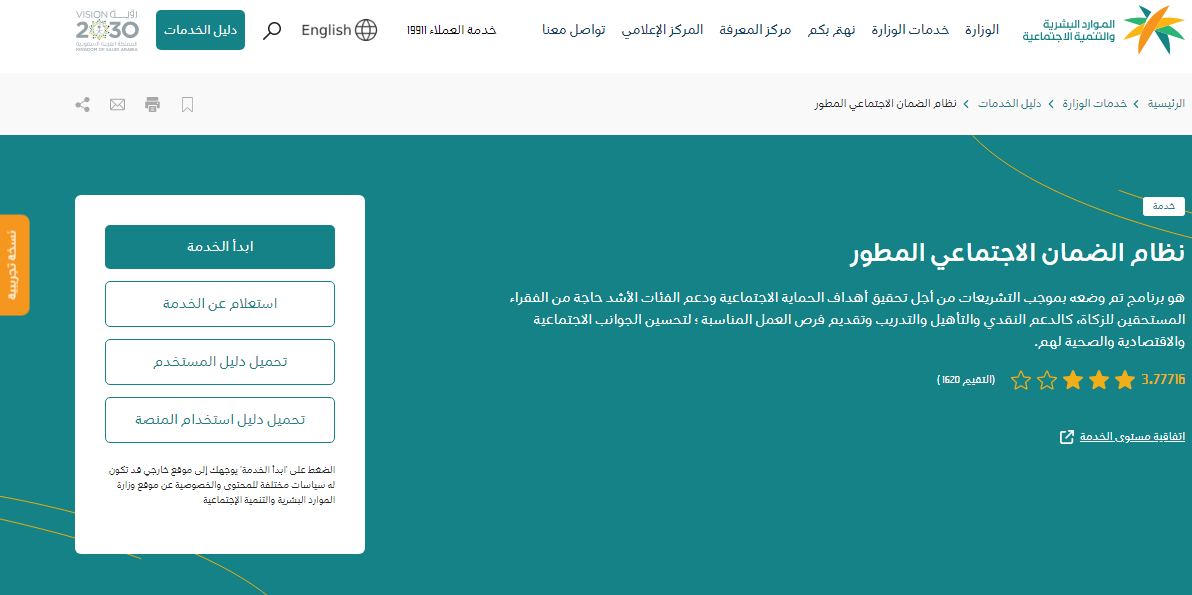 - ثم قم باختيار الضمان الاجتماعي المطور.