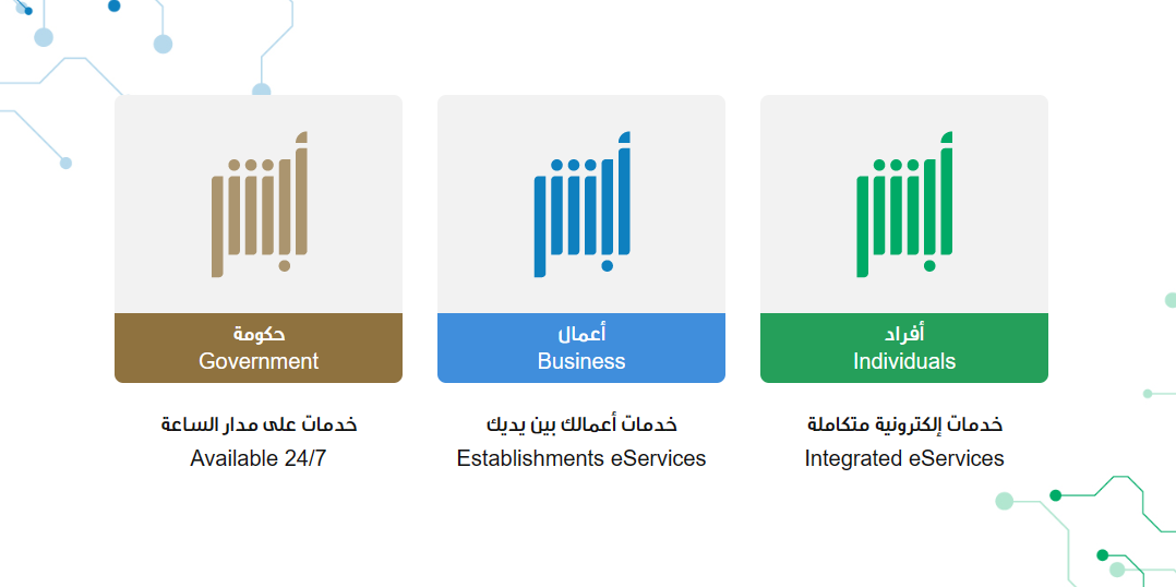 - الوصول إلى الموقع الرسمي لمنصة أبشر.