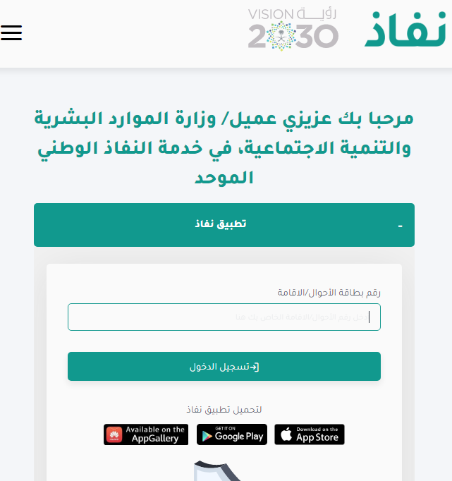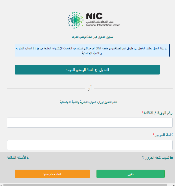 - يتم الدخول من خلال بوابة النفاذ الوطني الموحد.