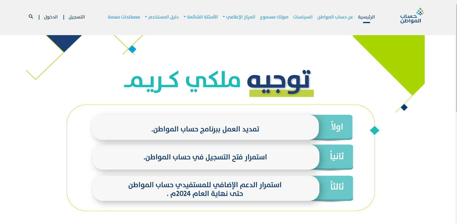 - تساعد الحاسبة المواطنين على اتخاذ القرار السليم للتسجيل في حساب المواطن.