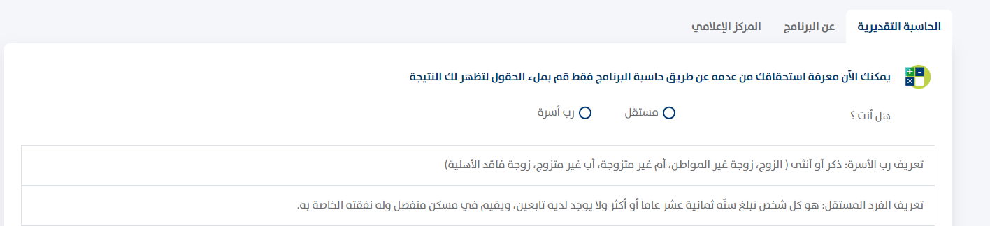- تحديد حالة الشخص المستفيد سواء كان فرد أم رب أسرة.