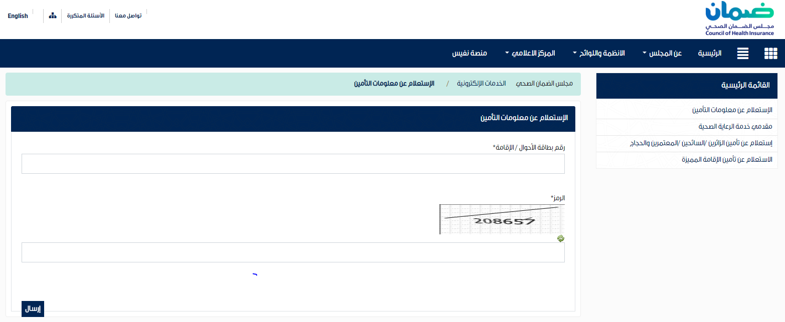 - اختيار "الاستعلام عن التأمين الطبي".