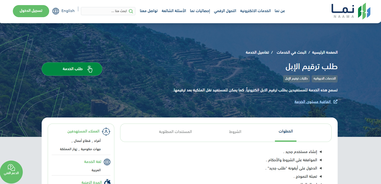 خطوات التسجيل في خدمة ترقيم الإبل