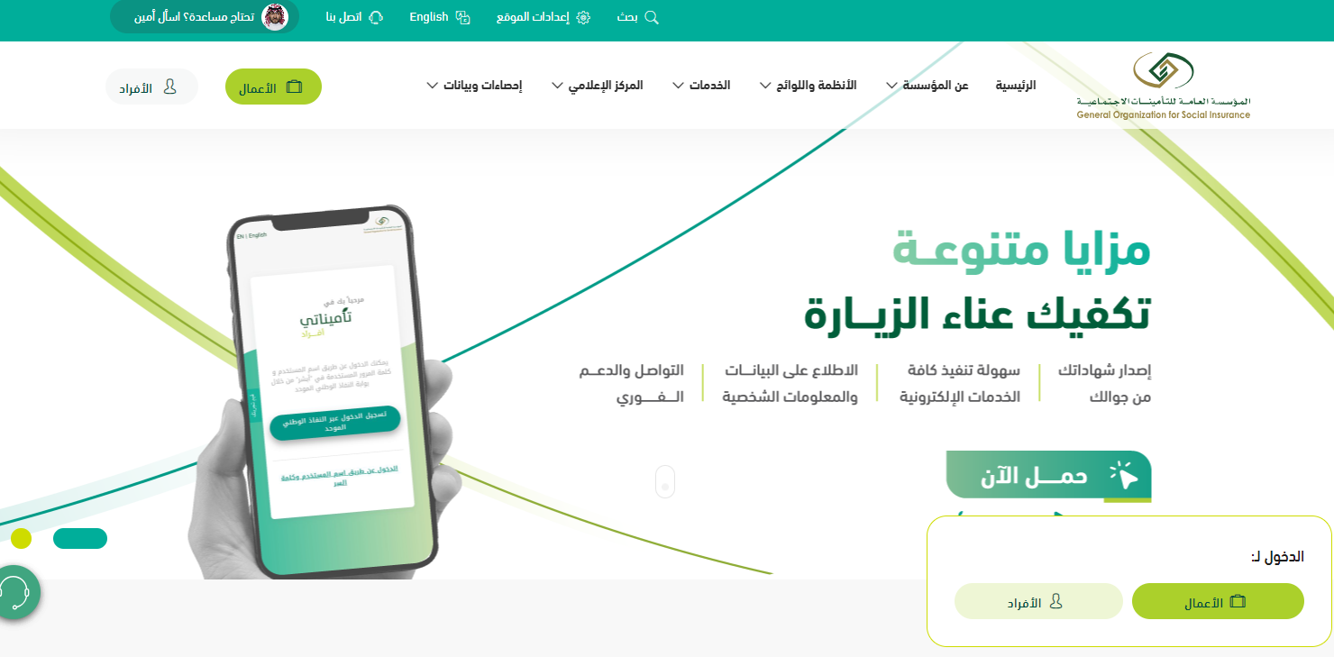 - يتم التوجه إلى الموقع الرسمي الخاص بالمؤسسة العامة للتأمينات الاجتماعية.