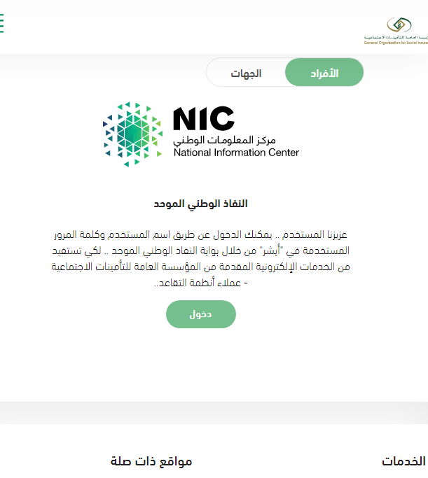 - الذهاب إلى الموقع الإلكتروني الخاص بالمؤسسة العامة للتأمينات الاجتماعية.