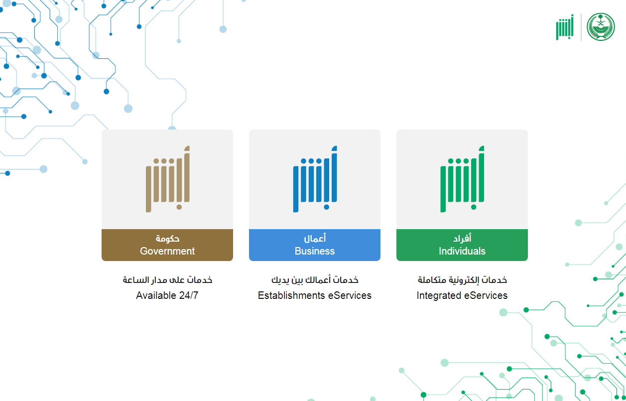 - قم بالدخول إلى منصة أبشر الإلكترونية "من هنا".
