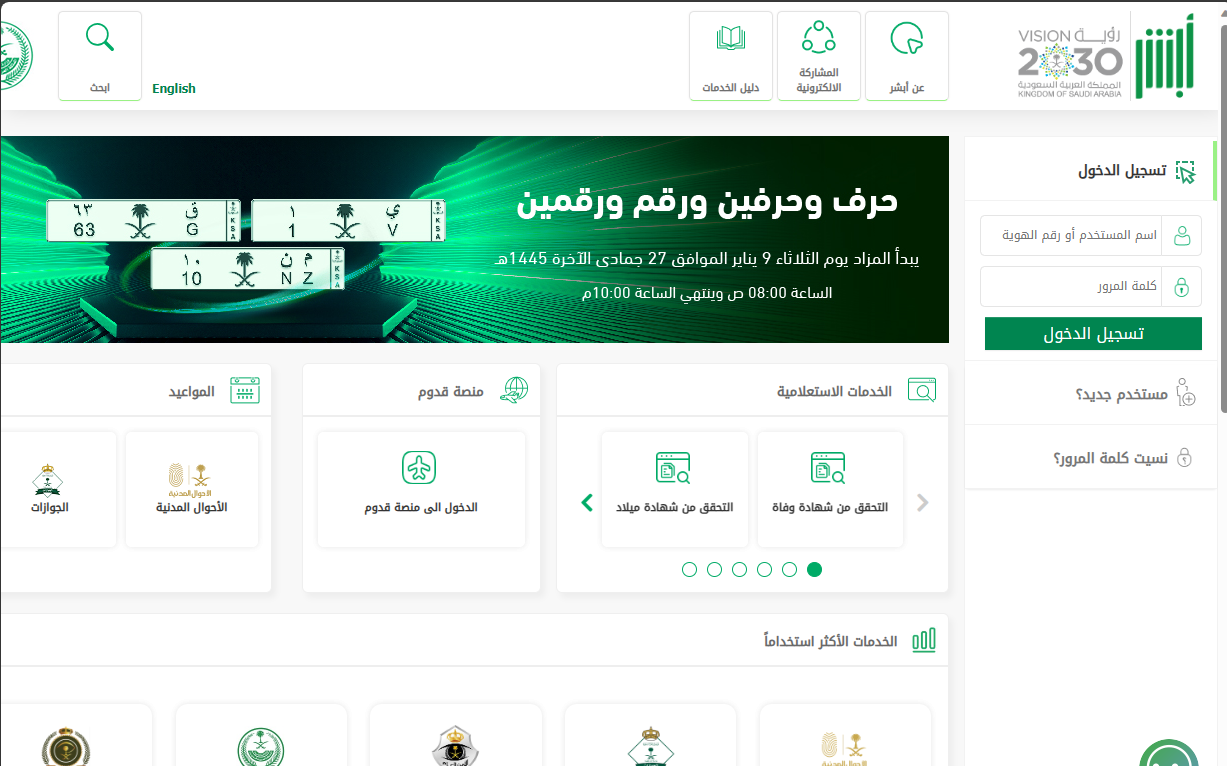 - الانتقال إلى الموقع الرسمي لمنصة أبشر.