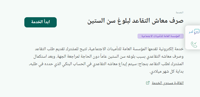 - الولوج إلى خدمة صرف معاش التقاعد لبلوغ سن الستين.