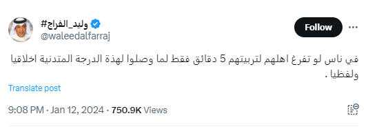 هذا هو ما حدث خلال الساعات الماضية عندما قام الإعلامي وليد الفراج مُقدم برنامج أكشن مع وليد بكتابة تغريدة صُدمت لها الجماهير جاء مفادها "في ناس لو تفرغ أهلهم لتربيتهم 5 دقائق فقط لما وصلوا لهذه الدرجة المتدنية أخلاقيًا ولفظيًا".