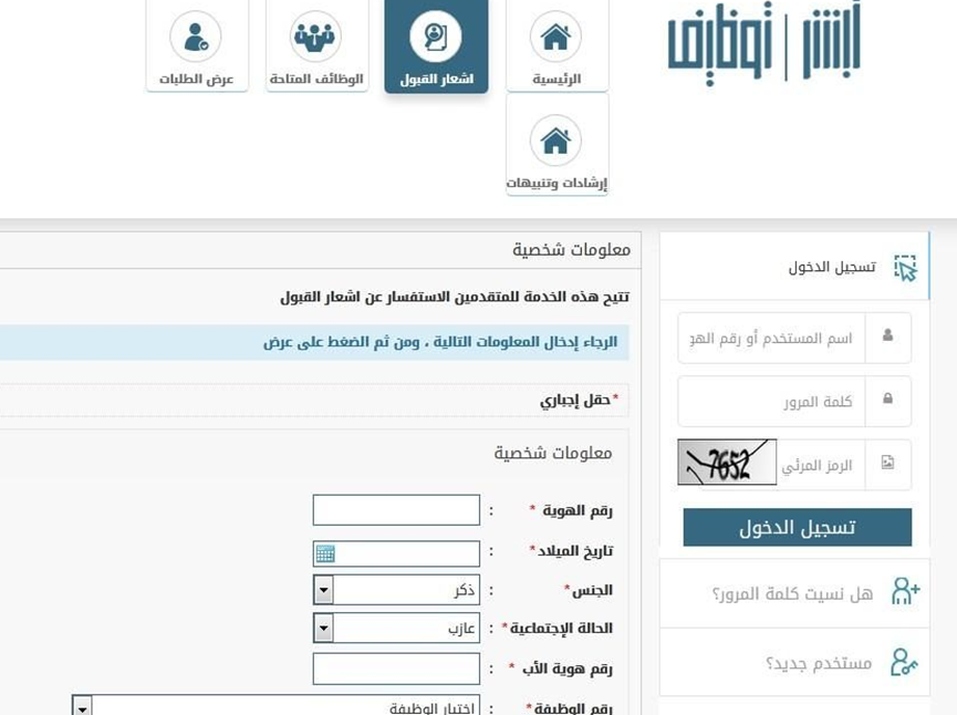 - يتم عرض نتيجة القبول والتسجيل في وظائف الأمن العام