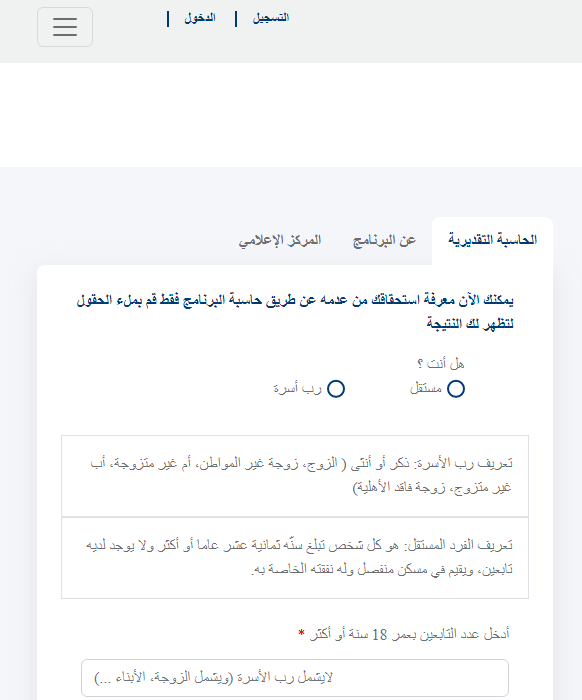 - إذا لم يتم تحديث البيانات الخاصة بالمستفيد باستمرار، والذي من خلاله قد يسقط الدعم الخاص بالبرنامج.