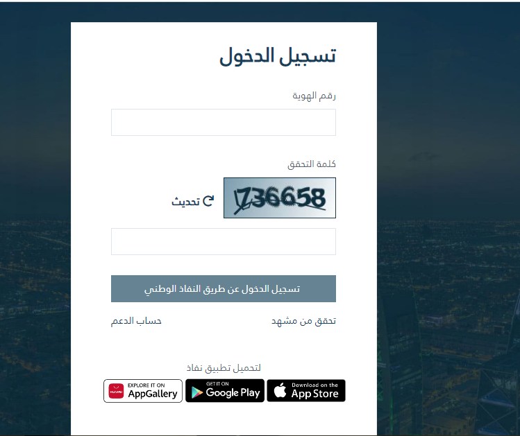 - اختر أيقونة تسجيل الدخول عن طريق النفاذ الوطني.