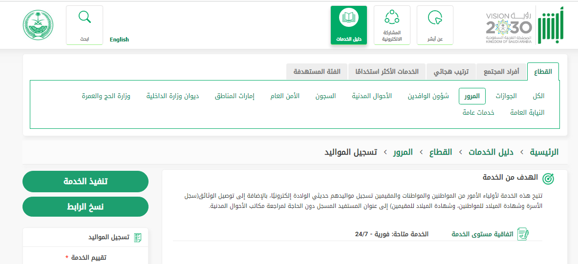 إن موقع أبشر يقوم بإتاحة الكثير من خدمات الأحوال المدنية السعودية بشكل إلكتروني للتسهيل على المستفيدين، ومن ضمنها خدمة إصدار الشهادات الخاصة بحديثي الولادة، حيث إن يمكن الدخول إلى الخدمة بكل سلاسة عن طريق النقر فوق رابط استخراج شهادة ميلاد رقمية للمواليد.