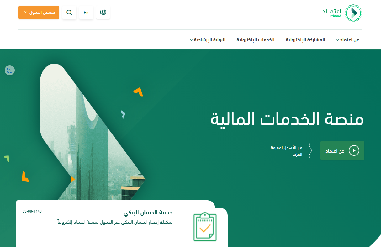 - الانتقال إلى الموقع الرسمي لمنصة اعتماد.