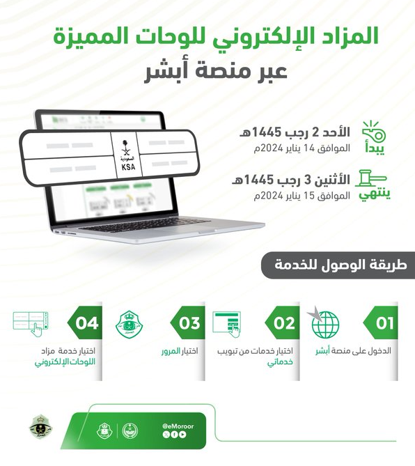 يبدأ اليوم وينتهي في هذا الموعد | المرور السعودي يعلن عن فتح باب المزاد الإلكتروني للوحات