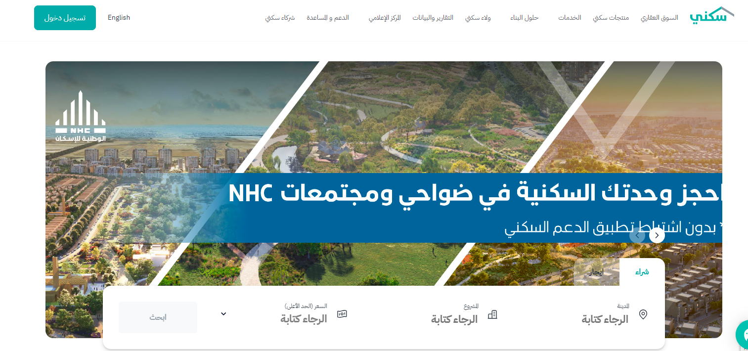 - قم بالتوجه إلى منصة سكني الإلكترونية.