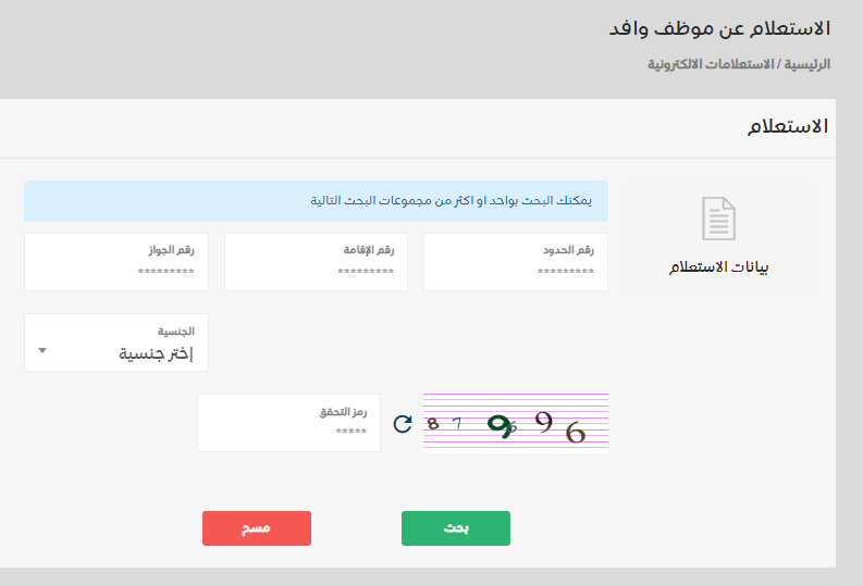 الاستعلام عن موظف وافد في السعودية