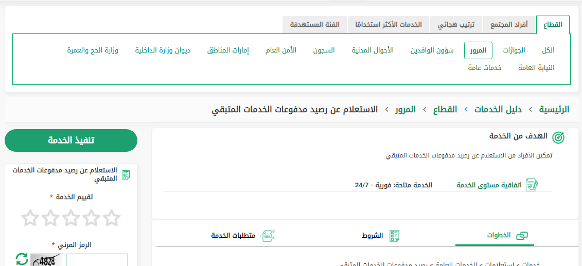 - قم بالضغط على الاستعلام عن رصيد مدفوعات الخدمات المتبقي.