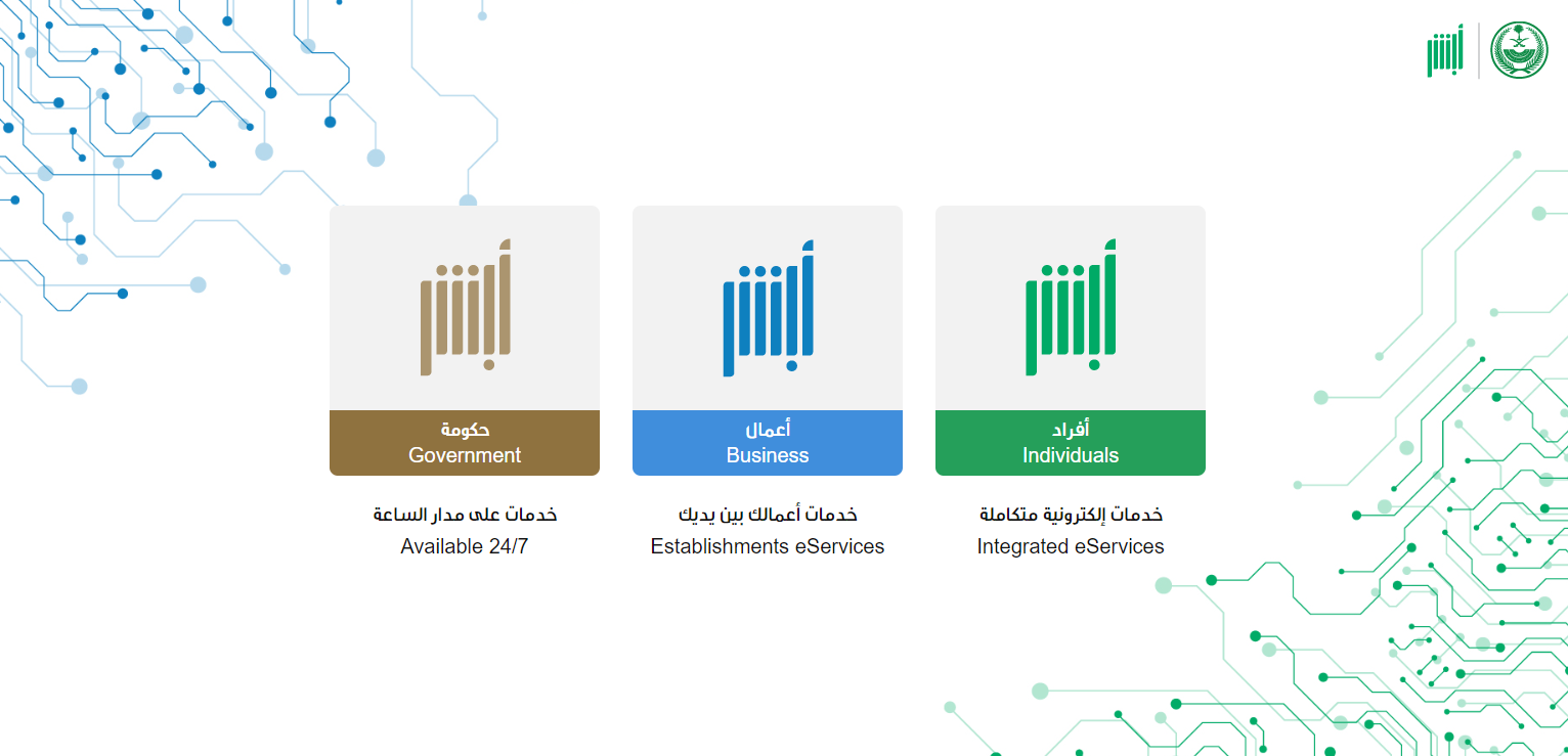 - الدخول إلى الموقع الرسمي لمنصة أبشر.