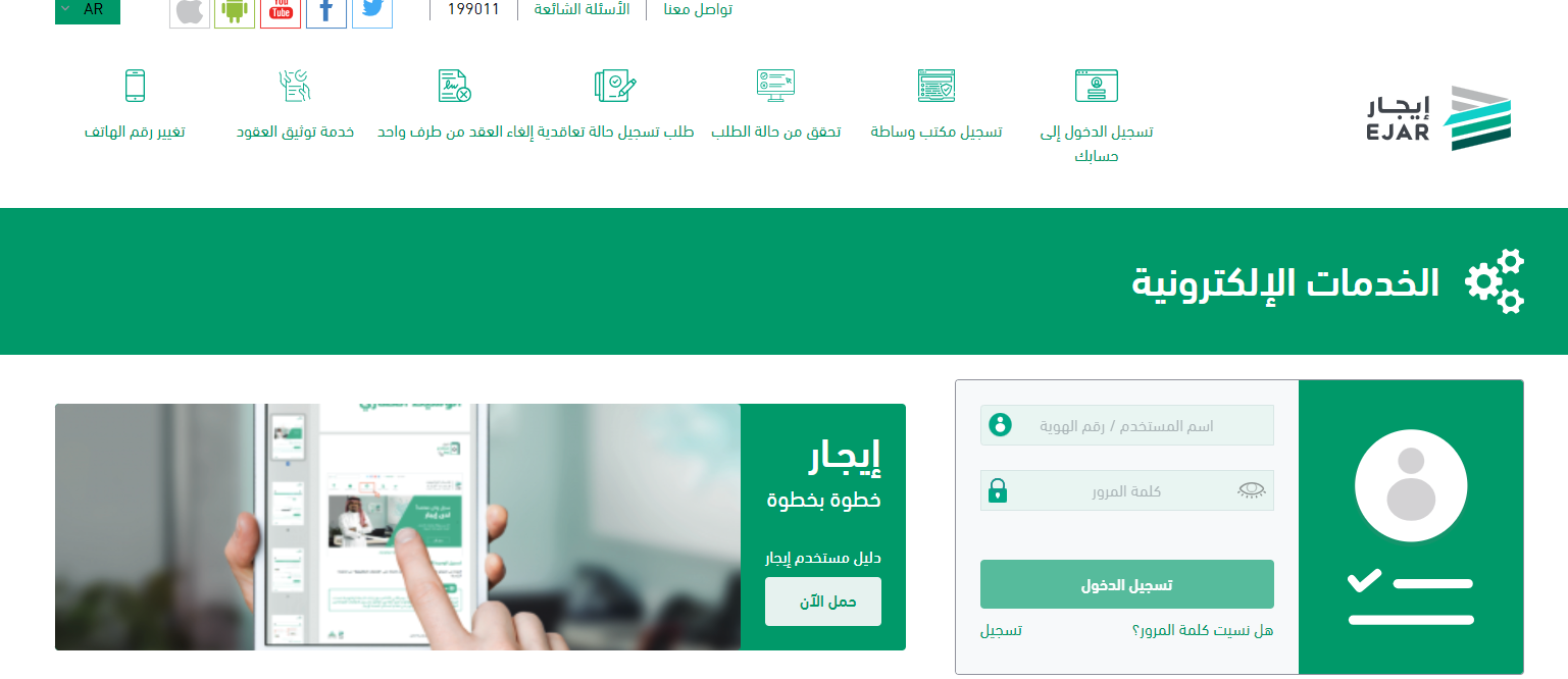 - قم بزيارة الموقع الرسمي الخاص بمنصة إيجار الرقمية.
