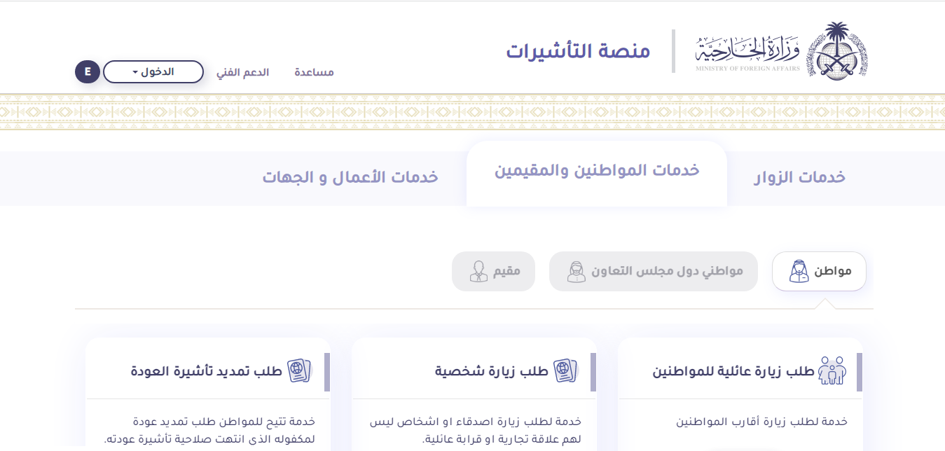 طريقة توثيق تأشيرة زيارة عائلية من النفاذ الوطني