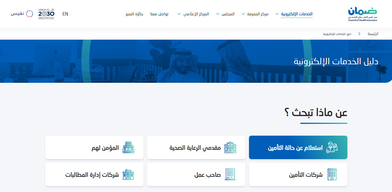 خدمات نظام التأمين الطبي من المجلس الضمان الصحي