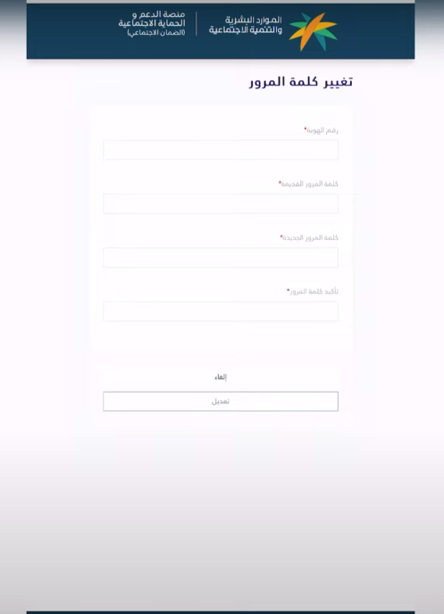 - كتابة رقم الهوية، كلمة المرور القديمة والجديدة.