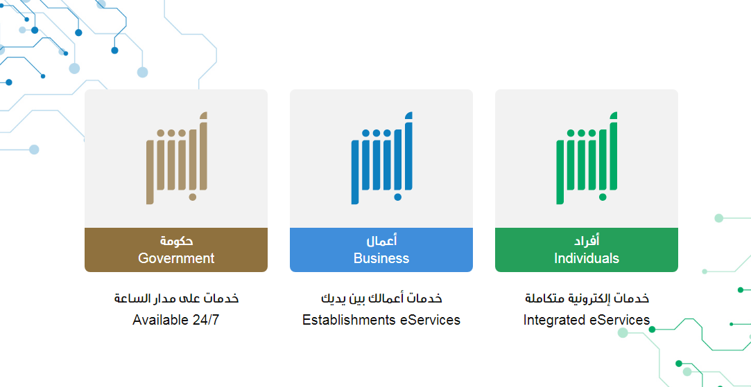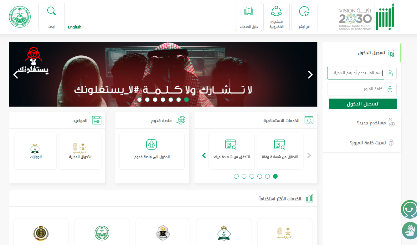 - التوجه إلى الموقع الرسمي لمنصة أبشر.